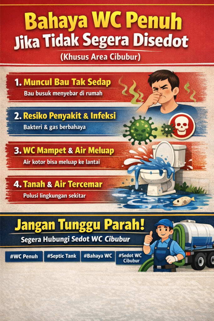 Pendahuluan: Pentingnya Menjaga Kebersihan WC Kebersihan toilet merupakan aspek yang sangat penting dalam menjaga kesehatan dan kenyamanan bagi penghuni maupun pengunjung suatu kawasan. Di area Cibubur, di mana penggunaan fasilitas umum cukup tinggi, risiko yang ditimbulkan oleh WC yang penuh menjadi perhatian utama. Bahaya WC penuh jika tidak segera disedot (khusus area Cibubur) tidak hanya